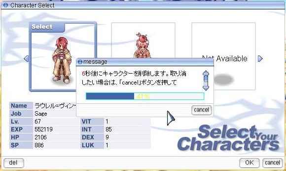 何か新キャラでもやろうと思って使ってないセージ消去。