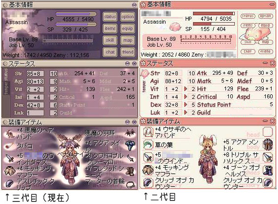 あともっとAGIがあったかもしれない…作り直す度に職自体の性能(回避率向上スキルの回避率が増えたり)が上がってたので段々AGIを削って他に回すようになってきました。